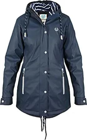Damen Regenmantel Friesennerz 620 | halblanger wasserdichter Regenparka | winddicht mit maritimen, weiß/blauen Innenfutter, Navy, Größe:38