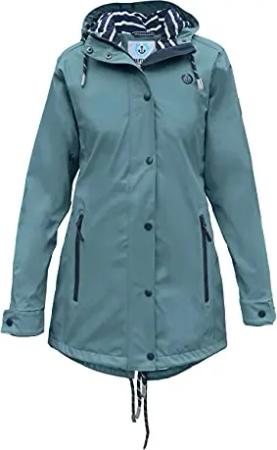 Damen Regenmantel Friesennerz mit Teddyfleece warm gefüttert Regenjacke wasserdicht, Größe:50, Farbe:petrolblau