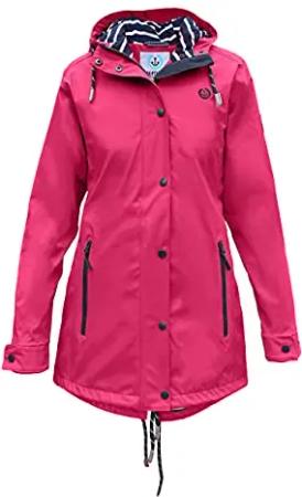 Damen Regenmantel Friesennerz 62058 | halblanger wasserdichter Regenparka | winddicht mit maritimen, weiß/blauen Innenfutter | Kapuze Außentaschen mit Reißverschluss, pink, 52