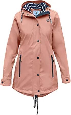 Damen Regenmantel Friesennerz Maritime Regenjacke Gestreiftes Innenfutter, Farbe:Rosa, Größe:46