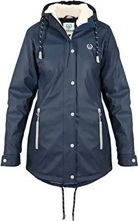 Damen Regenmantel Friesennerz mit Teddyfleece warm gefüttert Regenjacke wasserdicht, Farbe:dunkelblau, Größe:44