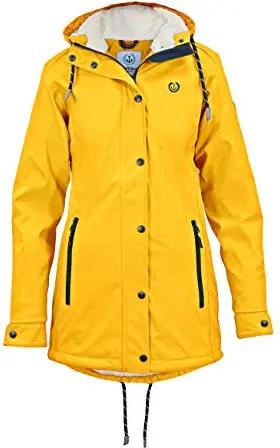 Damen Regenmantel Friesennerz mit Teddyfleece warm gefüttert Regenjacke wasserdicht, Farbe:gelb, Größe:44