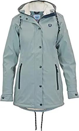 Damen Regenmantel Friesennerz mit Teddyfleece warm gefüttert Regenjacke wasserdicht, Farbe:hellblau, Größe:44