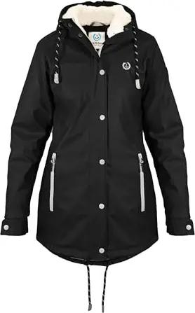 Damen Regenmantel Friesennerz mit Teddyfleece warm gefüttert Regenjacke wasserdicht, Größe:42, Farbe:schwarz