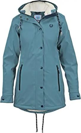 Damen Regenmantel Friesennerz mit Teddyfleece warm gefüttert Regenjacke wasserdicht, Größe:46, Farbe:petrolblau