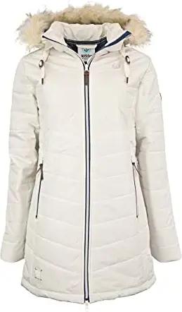 Damen Regenmantel Friesennerz 620 | halblanger wasserdichter Regenparka | winddicht mit maritimen, weiß/blauen Innenfutter, Weiß, Größe:40