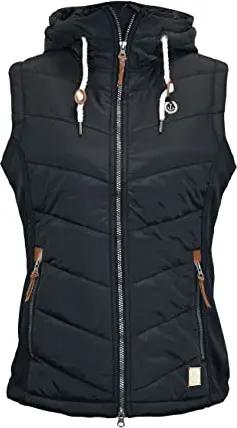 Damen Steppweste | Übergangsweste | Wind- und Wasserabweisend | Stretch-Einsätze | Verstellbare Kapuze | Taillierter Schnitt | Kinnschutz | Übergrößen Verfügbar, Schwarz, 36