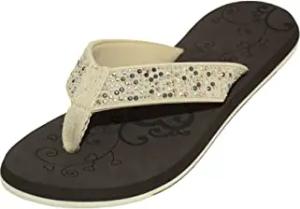 Damen Zehenstegpantolette Midnight | Flip Flop Zehentrenner Thong Sandale | Badelatschen Strand Pool Sommer braun beige, Größe:41 EU