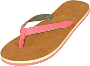 Damen Zehenstegpantolette Tropical | Flip Flop Zehentrenner Thong Sandale Badelatschen | Pantoletten Sommer Strand Garten, Rosa Beige, 36 EU