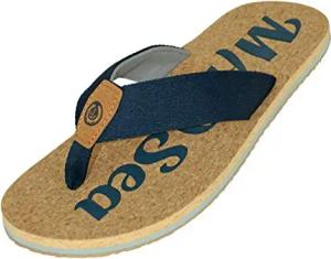 Herren Damen Unisex Zehenstegpantolette Nature | Flip Flop Zehentrenner Sandale Strand Sommer | Korkoptik dunkelblau grau, Größe:38 EU