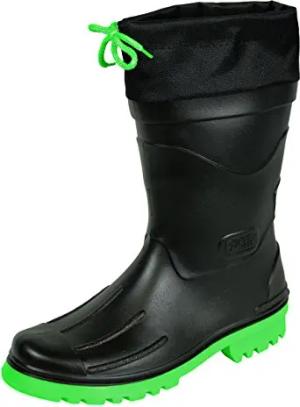 Herren Jungen Gummistiefel Nils-Hannes | Halbhoher wasserdichter, ungefütterter Regenstiefel | mit verschnürbarer Nylonstulpe farbigen Sohle, schwarz/hellgrün, 48