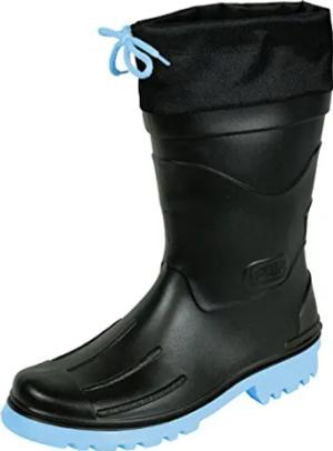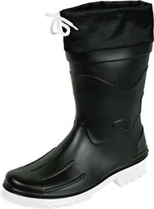Herren Jungen Gummistiefel Nils-Hannes | Halbhoher wasserdichter, ungefütterter Regenstiefel | mit verschnürbarer Nylonstulpe farbigen Sohle, schwarz/weiß, 43