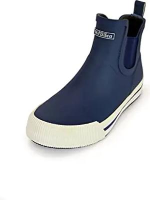 Unisex Gummistiefelette Short Story | Regenstiefel Gummistiefel Gartenschuhe Wasserdicht Segelstiefel | Kurzer Schaft Knöchelhoch, Dunkelblau/Weiß, 43 EU