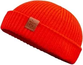 Fishermans Beanie - Mütze, Fischermütze, Dockermütze, Strickmütze mit Echt-Leder Veredelung (Red)
