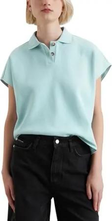 Damen Kurzarm-Poloshirt aus Bio-Baumwolle Wide Fit, Blau (Blue Fog), S
