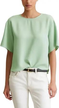 Damen Kurzarmbluse mit Rundhalsausschnitt Cropped, Grün (Mint Mist), S