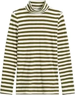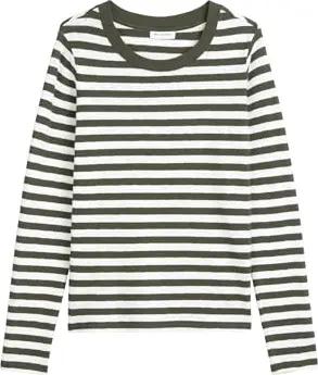 Marc OߴPolo Denim Damen Langarmshirt aus Bio-Baumwolle gestreift, Grün (Dark Green Multi 02), XL