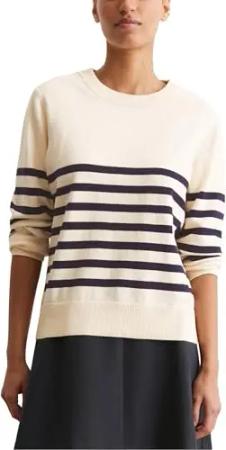 Damen Pullover mit Rundhalsausschnitt gestreift, Weiß (Offwhite Multi 01), L