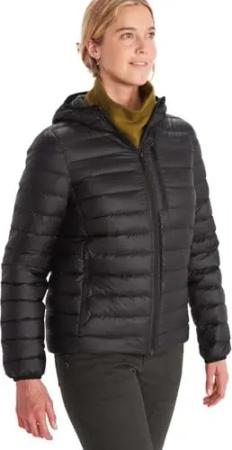 Damen Wm's Highlander Hoody, Leichte Daunenjacke, warme Winterjacke, wasserabweisende Steppjacke, winddichte Funktionsjacke, klein packbare Outdoorjacke mit Kapuze, Black, L