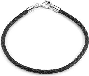Damen Herren Beads Armband Leder 3,2mm schwarz 925 Silber Lederarmband 18-22cm A58, Länge:21 cm