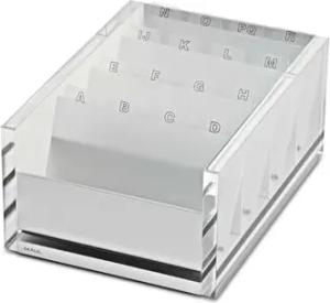 Visitenkartenbox MAULacro 17x12,2x7,5cm | Karteikarten Box mit Register A-Z | Box aus Acryl und Aluminium | Schonende Noppen für Schreibtisch | Platz für max. 300 Karten | Transparent