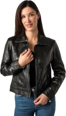 Damen Echtleder Lederjacke Lammnappa schwarz Größe L