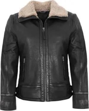 Damen Echtleder Lederjacke Lammnubuk Kunstfell anthracite