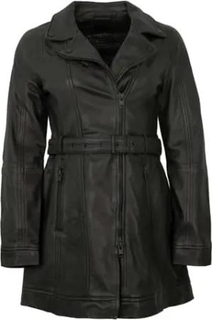 Damen Echtleder Ledermantel Lammnappa Gürtel schwarz Größe S