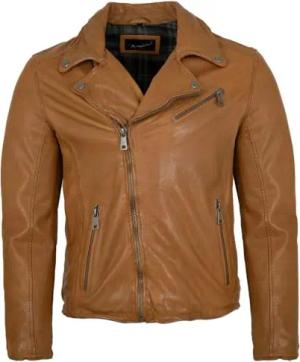 Herren Echtleder Lederjacke Bikerjacke Lammnappa Caramel Größe S
