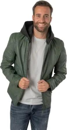 Herren Echtleder Lederjacke Kapuze Lammnappa Salbei grün Größe XL