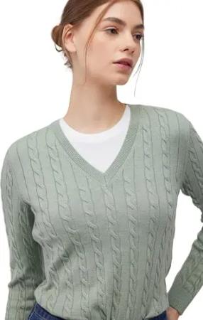 Damen V-Neck Sweater Pullover, Lily pad, XS