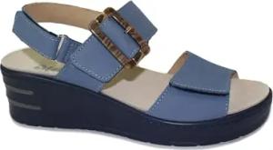 19227 Jeans Damen Sandalen Leder verstellbare Risse herausnehmbares Fussbett Komfort Keilabsatz 38