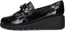 Schwarzer Mokassin aus Lack mit Kette und Keilabsatz für Damen, Schwarz , 39 EU