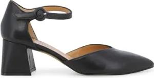 Sommer-Pumps mit Riemen, mittlerer Absatz, Obermaterial aus Leder, Schwarz , 38 EU Larga