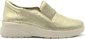 Damen-Mokassin aus Leder mit Keilabsatz, Platin, 40 EU