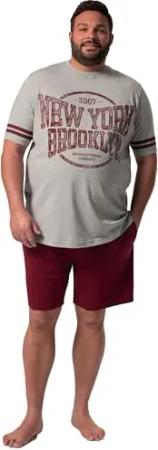 Herren große Größen Menswear L-8XL Men+ Schlafanzug Bauchfit, Zweiteiler, T-Shirt, Brustprint, Shorts, bis 8 XL dunkelrot XXL 837719545-XXL