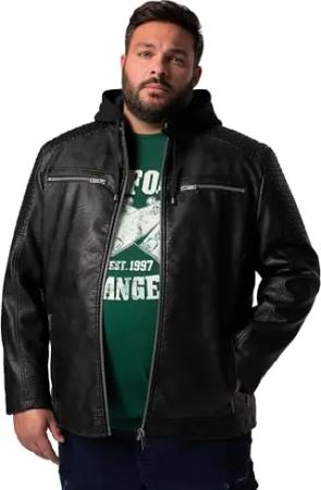 Herren große Größen Übergrößen Menswear L-8XL Bikerjacke, Lederoptik, Jersey-Kapuze schwarz 5XL 836793100-5XL