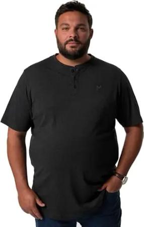 Herren große Größen Übergrößen Menswear L-8XL Henley, Basic, Halbarm, Rundhals schwarz L 836365100-L
