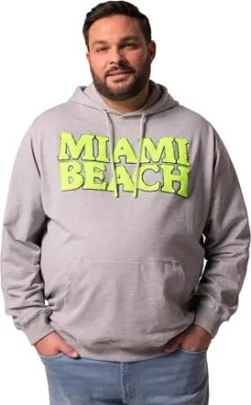 Herren große Größen Übergrößen Menswear L-8XL Hoodie, Sweat, Kapuze, Brustprint grau Melange 7XL 837675123-7XL