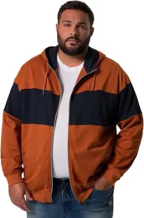 Herren große Größen Übergrößen Menswear L-8XL Hoodiejacke, Sweat, Colorblocking, Kapuze Sandelholz L 832042320-L