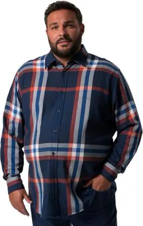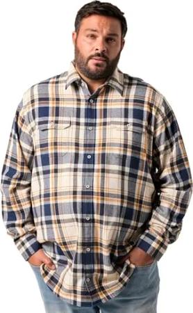 Herren große Größen Übergrößen Menswear L-8XL Karo-Flanellhemd, Langarm, Kentkragen, Modern Fit Navy blau XL 832940130-XL