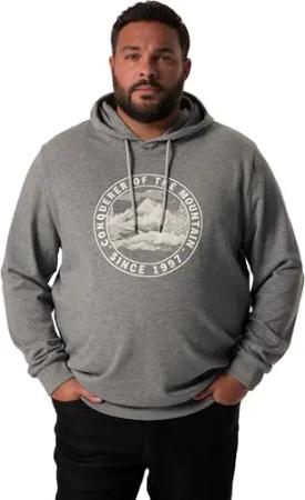 Herren große Größen Übergrößen Menswear L-8XL Men+ Hoodie, Sweat, Kapuze, Brustprint, bis 8 XL anthrazit Melange XXL 832079121-XXL