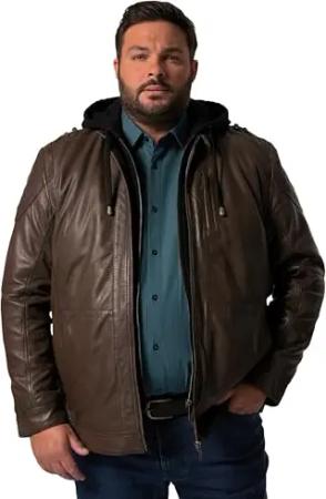 Herren große Größen Übergrößen Menswear L-8XL Men+ Lederjacke, Leder, Jersey-Kapuze, Zipper, bis 7 XL haselnuss 3XL 832195110-3XL