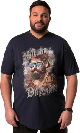 Herren große Größen Übergrößen Menswear L-8XL T-Shirt, Halbarm, Trachten-Motiv, V-Ausschnitt Navy blau 8XL 832189130-8XL