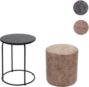 2er-Set Sitzhocker und Beistelltisch HWC-K48, Kaffeetisch Tisch Hocker, MVG-zertifiziert MDF Metall Kunstleder ~ braun