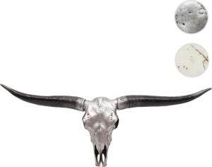 Deko Schädel 45cm HWC-T454, Polyresin Stier Bulle Longhorn Kopf Trophäe, In-/Outdoor ~ silberfarben