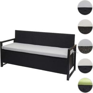 Poly-Rattan 3er Sitzbank HWC-F39, Gartenbank Truhenbank, Staufach Aufbewahrung Sitzkissen ~ anthrazit, Kissen grau