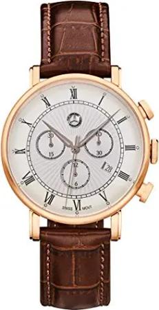 Mercedes-Benz Collection Chronograph Herren Classic Retro Gold | Herrenuhr/Armbanduhr aus Edelstahl & Kalbsleder | braun, roségold