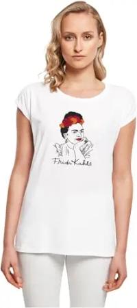 Damen T-Shirt Ladies Frida Kahlo - Drawing with Flowers Extended Shoulder Tee, Loose Fit, Cotton 100%, L