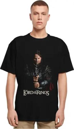 Men's MC1153-Lord of The Rings-Aragorn Heavy Oversize Tee T-Shirt, Black, L